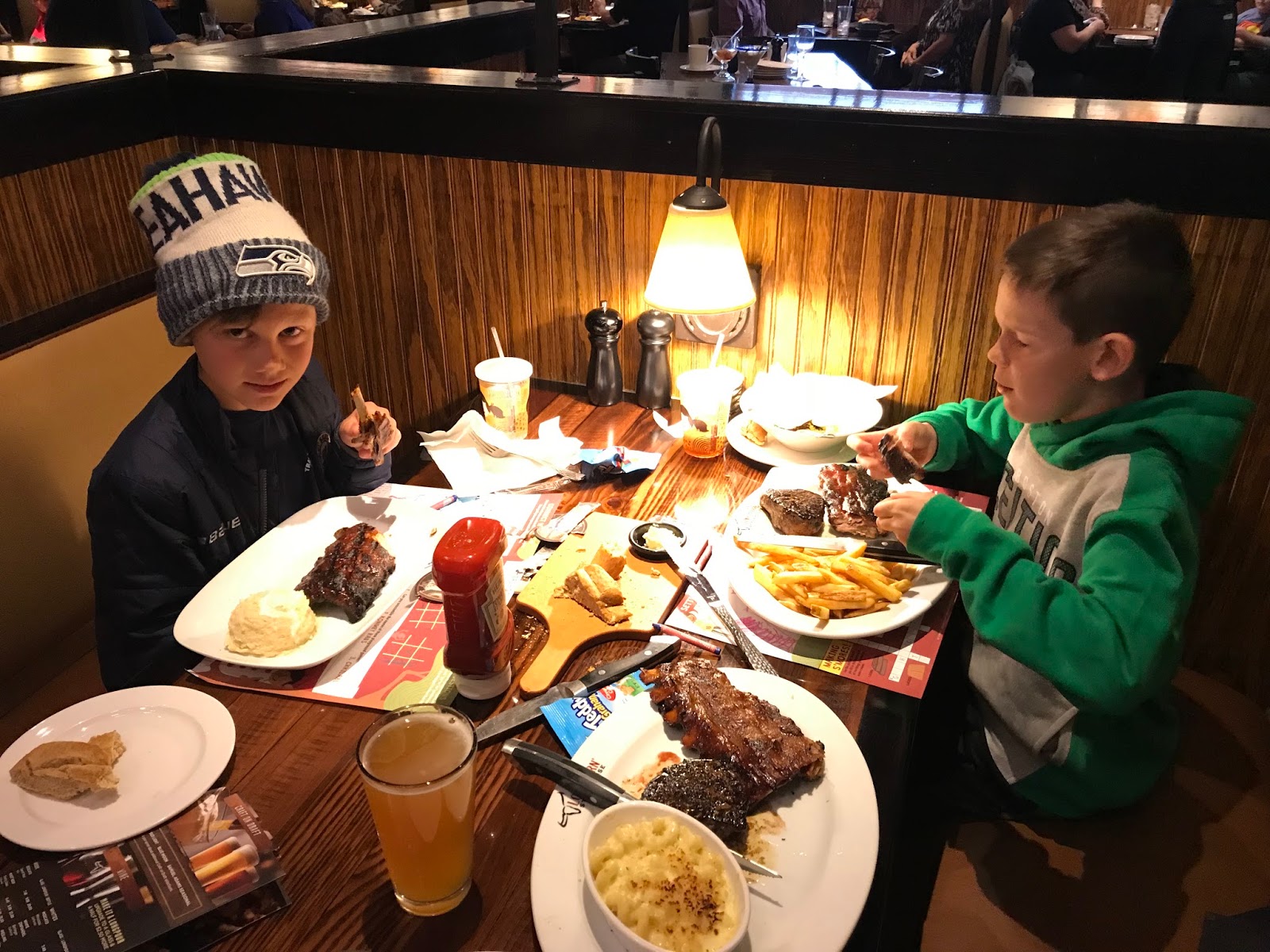 They went out to eat and had a little wait and the boys loved sitting at the bar with a root beer, watching some baseball.